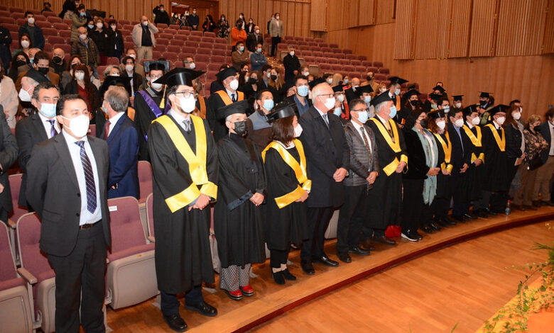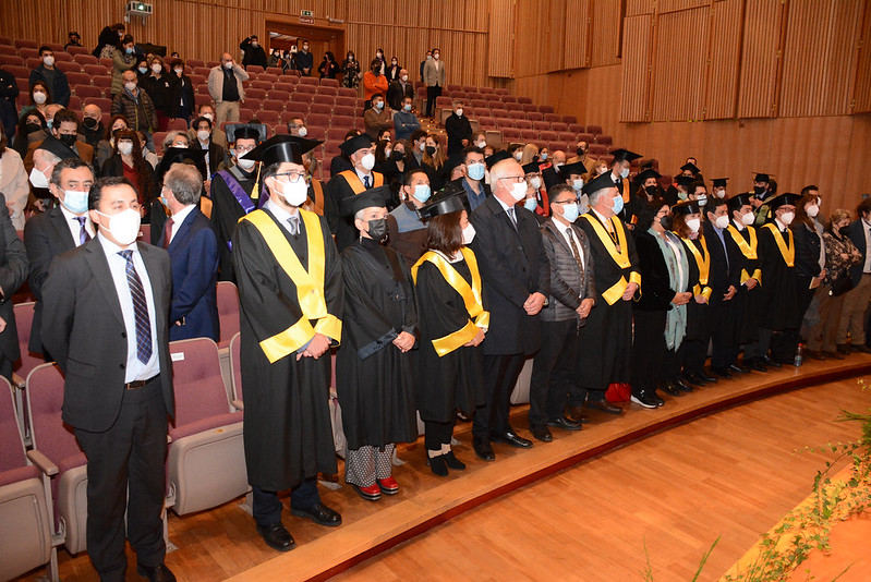 Luego del habitual desfile de profesores y profesoras investidos con togas y birretes –símbolos que llevan quienes han alcanzado la máxima categoría académica y las autoridades universitarias–, rito al que fue invitado a participar el Dr. Flavio Salazar, ministro de Ciencia, Tecnología, Conocimiento e Innovación, se dio inicio a la ceremonia en el Aula Magna, con la interpretación de la canción universitaria Gaudeamus Igitur y el himno de la Universidad Austral de Chile a cargo del Coro UACh.