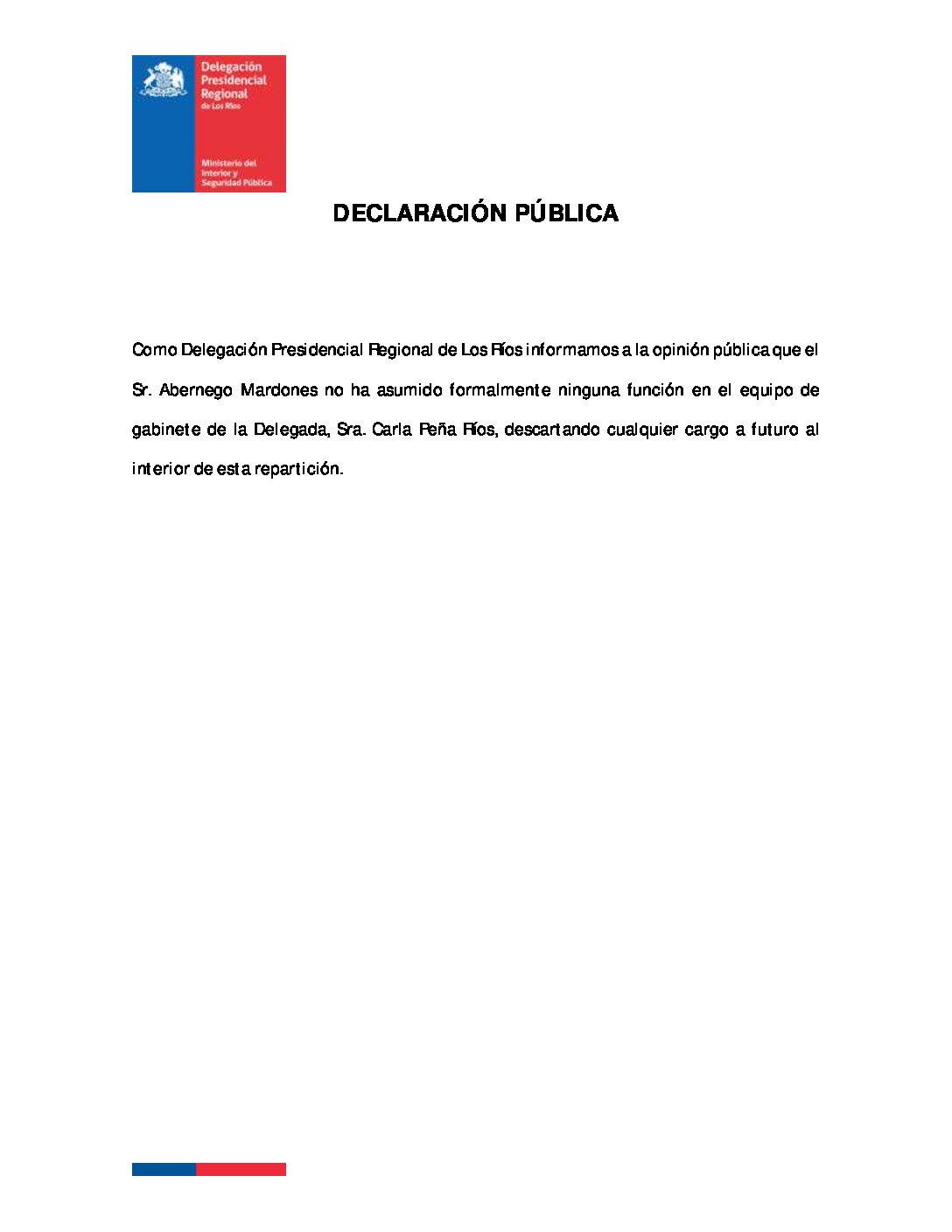 Al respecto, el Seremi de Gobierno Víctor Godoi Millán adelantó que este viernes la nueva delegada presidencial regional liderará su primer gabinete. “El gabinete regional, que incluye a todos los seremis y también al delegado presidencial provincial del Ranco se reunirá con la nueva delegada presidencial a primera hora de este viernes. En esta reunión, la delegada Carla Peña coordinará las primeras acciones con el equipo regional, poniendo en valor las acciones conjuntas que requiere esta etapa y que han sido mandatadas por nuestro Presidente Gabriel Boric. Entre estas está fortalecer la seguridad ciudadana, así como también temas sociales asociados a la vivienda y la reactivación económica”, explicó.