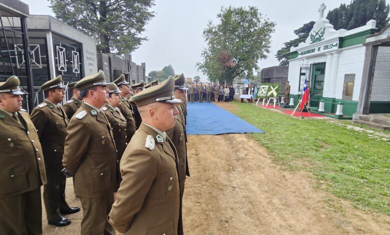 En el Cementerio Municipal de Valdivia, Carabineros de la Zona Los Ríos realizaron esta jornada la tradicional Romería para rendir homenaje a los miembros de la Institución fallecidos en actos de servicio