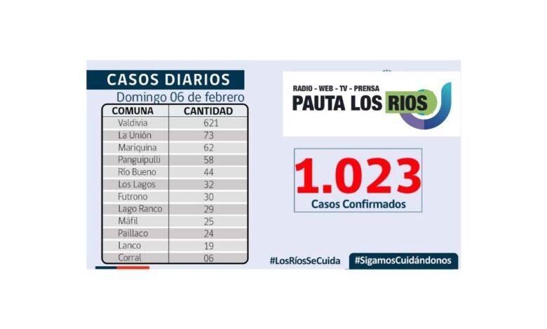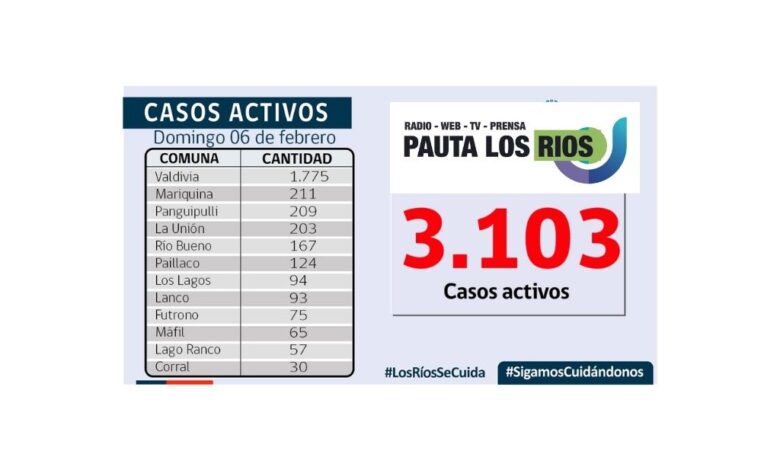 A la fecha, hay 3.103 casos activos, de los cuales 1.775 corresponden a la comuna de Valdivia y 211 a la comuna de Mariquina.