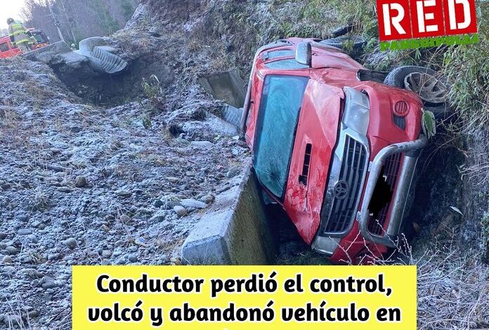 Conductor perdió el control, volcó y abandonó vehículo en las cercanías de Liquiñe