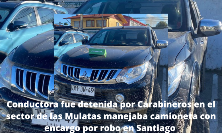Conductora fue detenida por Carabineros en el sector de las Mulatas manejaba camioneta con encargo por robo en Santiago