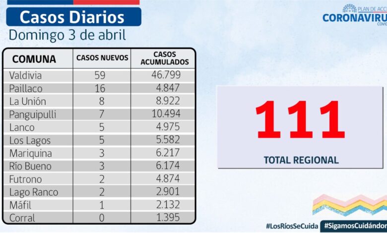 REPORTE] El SEREMI de Salud, Dr.José Llambías, informó que hoy se reportaron 111 nuevos casos de COVID-19 en Los Ríos.