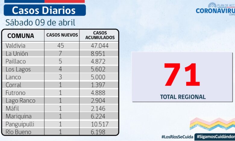 El SEREMI de Salud, Dr.José Llambías, informó que hoy se reportaron 71 nuevos casos de COVID-19 en Los Ríos.