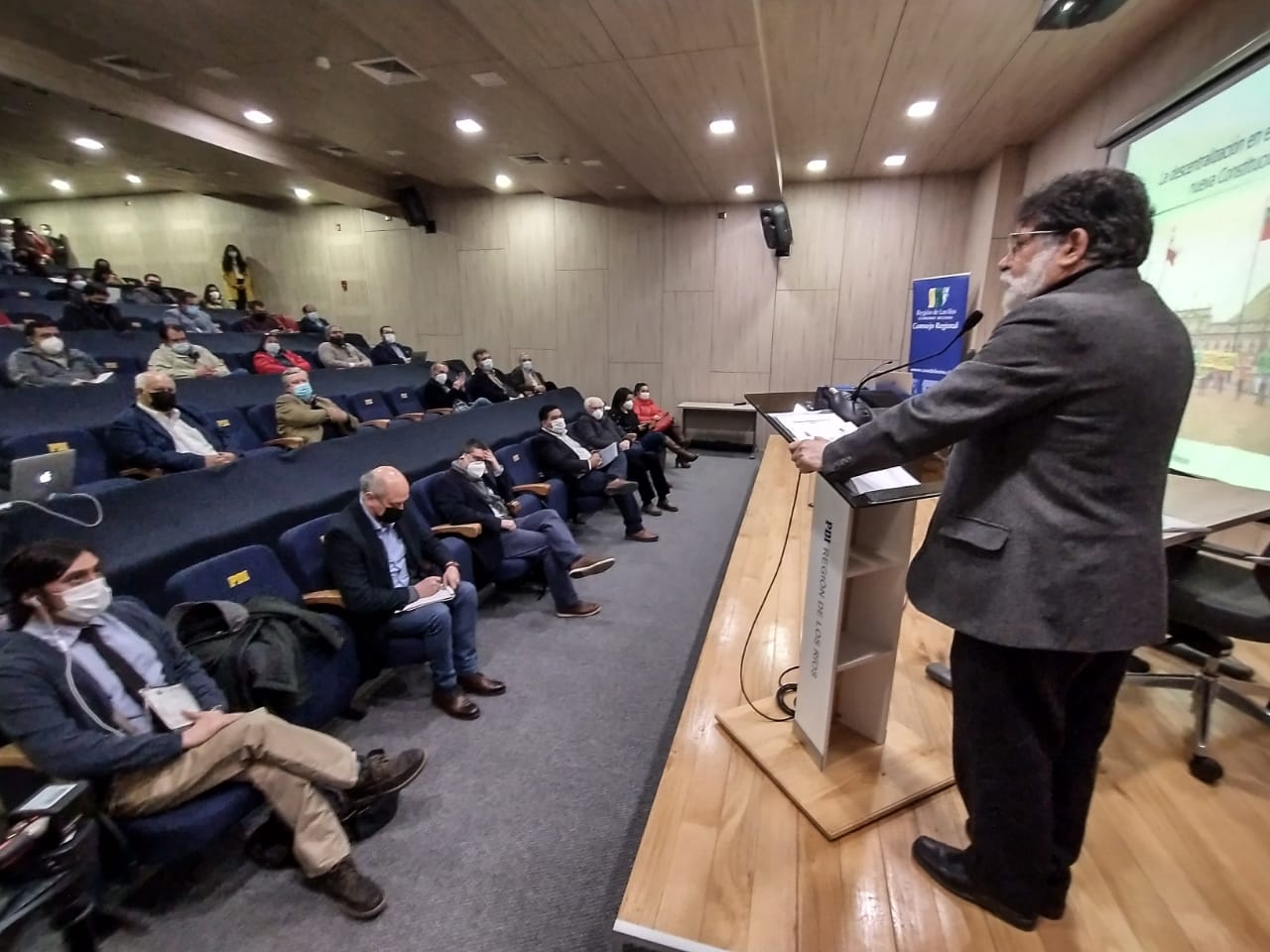 El Consejo Regional de Los Ríos realizó el seminario titulado “La Descentralización en el Marco de la Nueva Constitución”, en dependencias del auditorio del edificio de la PDI, en Valdivia. La actividad fue liderada por el Gobernador Regional y presidente del CORE, Luis Cuvertino y contó con la asistencia de Consejeros Regionales, académicos, funcionarios públicos, profesionales y actores del mundo político y social.