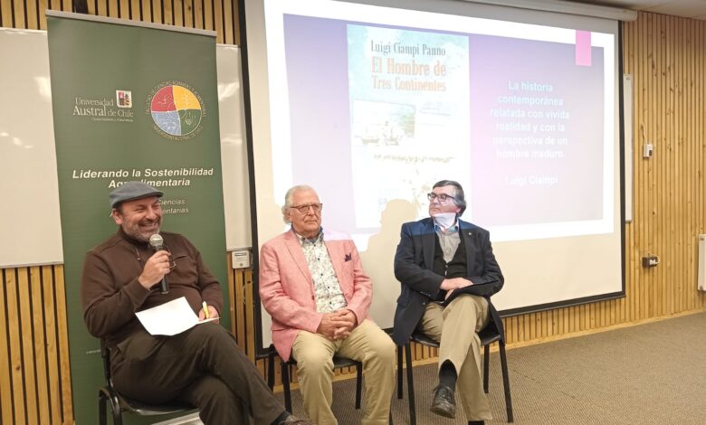 En una emotiva ceremonia se realizó la presentación del libro “El Hombre de Tres Continentes”, texto de la editorial Kultrún, que reúne la historia de vida del inmigrante italiano Riccardo Ciampi Lombardi, padre del Dr. Luigi Ciampi Panno, ex académico de la Universidad Austral de Chile quien es el autor de esta publicación.