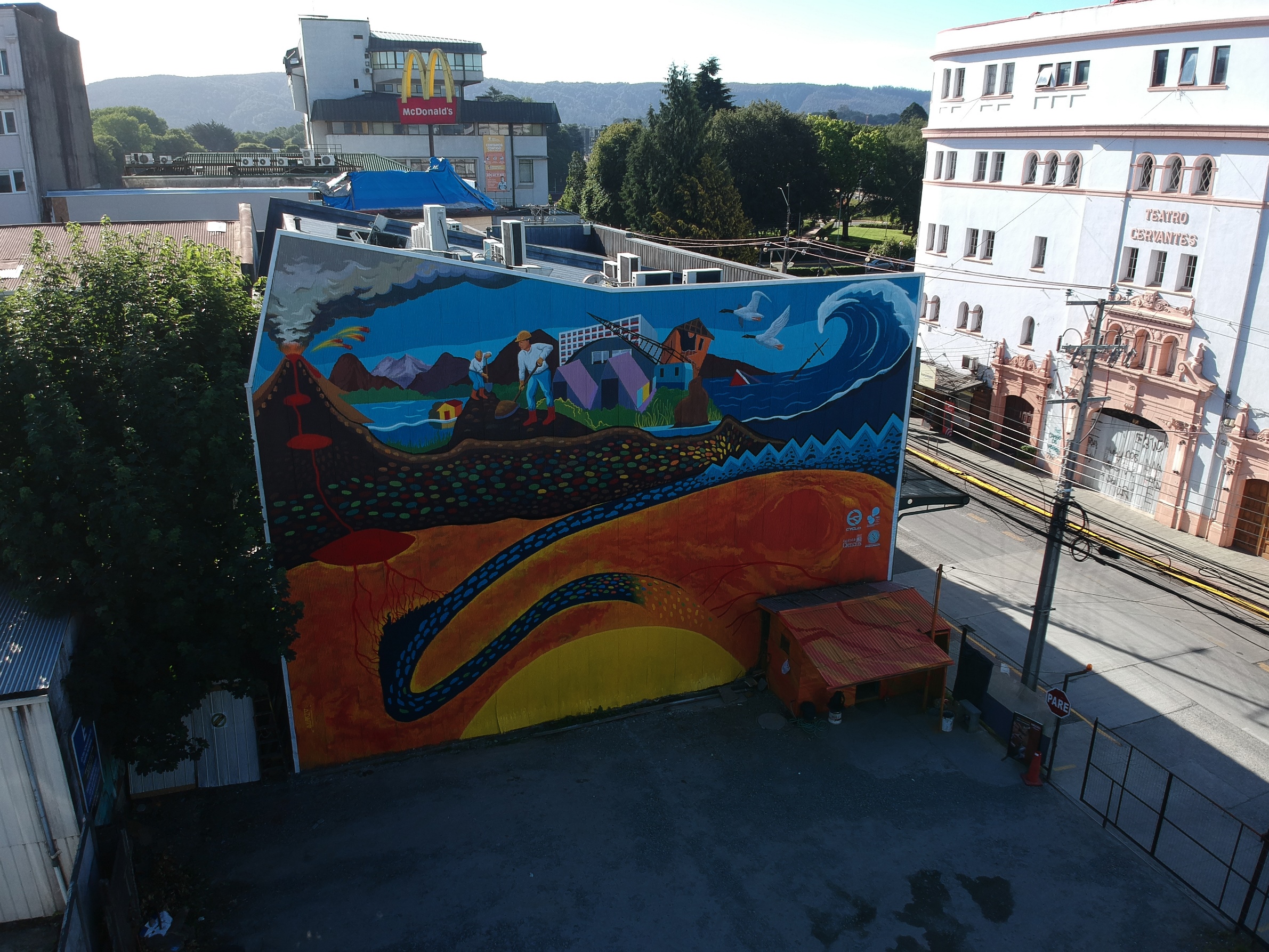Daniel Melnick, director del Núcleo Milenio Cyclo, explicó que el mural viene a ser un “homenaje a la ciudad en la ocasión de los 60 años” del Terremoto de 1960 -que se cumplieron el pasado 22 de mayo- fenómeno que para la ciencia “representa un hito muy importante, pues es el más grande registrado por la sismología moderna”.