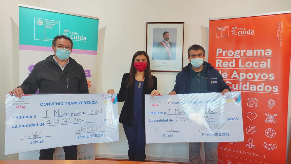 Más de $176 millones se destinaron en su conjunto para financiar la primera convocatoria 2022 de dichas comunas. Al respecto la Seremi Huaiquimilla dijo que “este convenio potencia la Red Local de Apoyos y Cuidados, beneficiando a las personas con dependencia severa o moderada y sus cuidadoras brindando un plan de cuidado, contando con profesionales y servicios especializados, mejorando así su calidad de vida. Esto va en la lógica de nuestro programa de Gobierno de que exista un cambio social y de paradigma y que el derecho a cuidar y ser cuidado sea efectivamente un pilar fundamental en los derechos sociales, transitando a un Estado cuidador”.