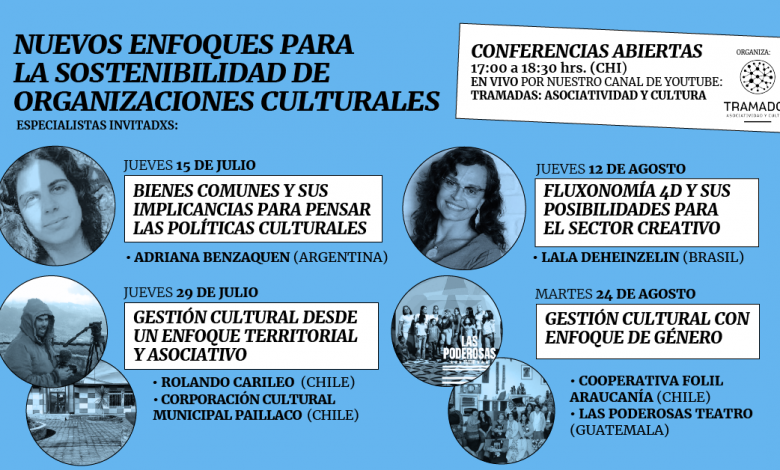 Las inscripciones para ser parte del ciclo de conferencias “Nuevos enfoques para la sostenibilidad de organizaciones culturales” están abiertas y la información está disponible en las redes sociales de @TramadosCultura.