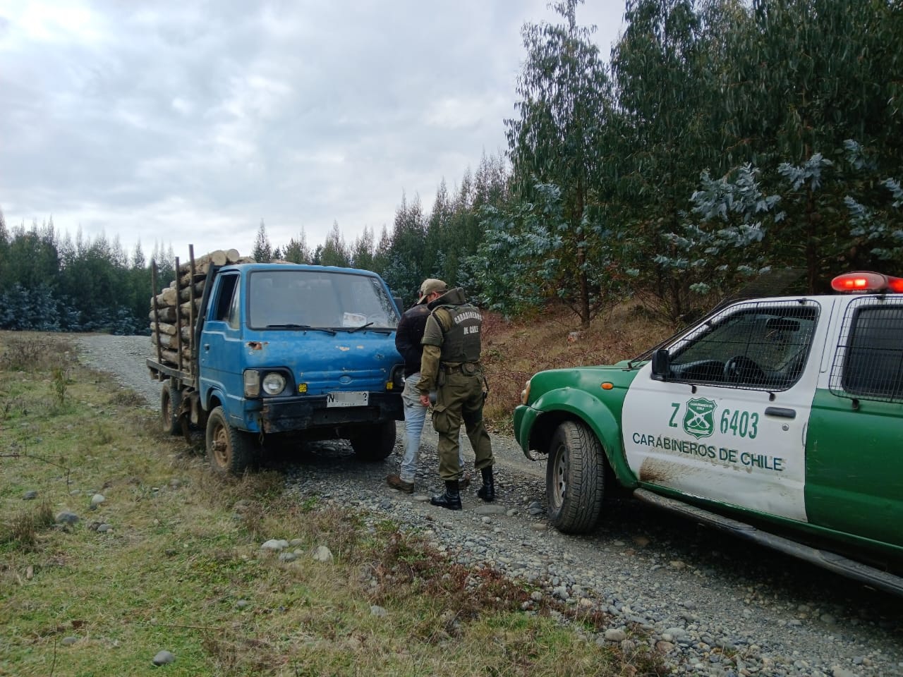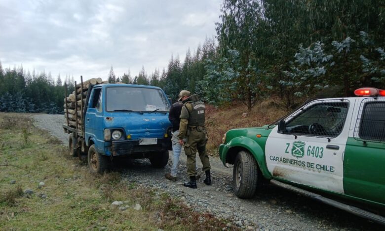 Por sustracción de madera, Carabineros de la Patrulla de Intervención Rural de Valdivia detuvo esta tarde al conductor de una camioneta cargada con leña de eucalipto, la cual había sido obtenida de manera ilegal desde el interior del predio forestal del sector Huiquicura.