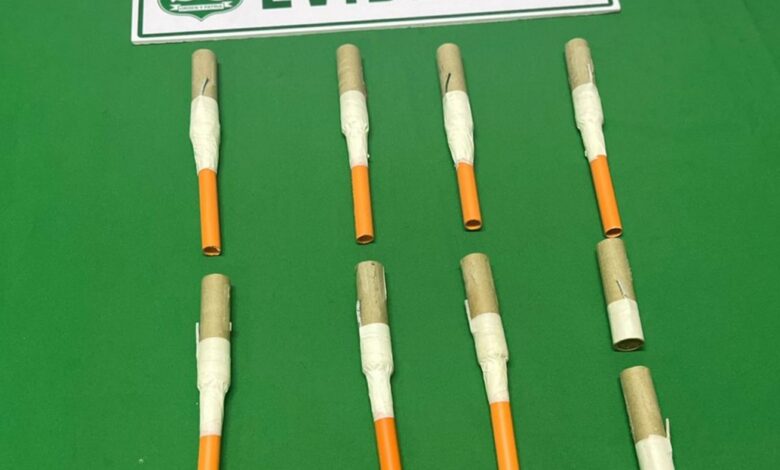 Los tres tubos de PVC de color naranjo, fueron advertidos por el personal policial, cuando realizaban control de identidad al imputado de iniciales N.P.M.O. (18).