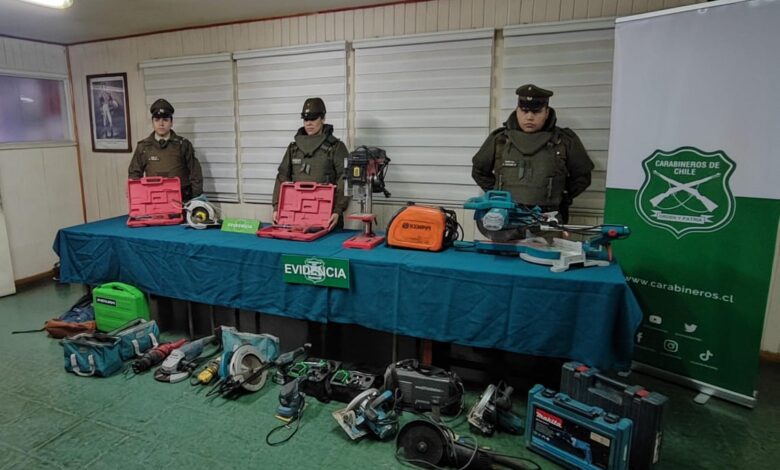 Por receptación de especies robadas, Carabineros SIP de la Tercera Comisaría La Unión y de la Subcomisaría de Paillaco detuvieron a seis adultos que fueron sorprendidos con diferentes herramientas sustraídas hace dos semanas desde vivienda en construcción en la comuna Futrono.