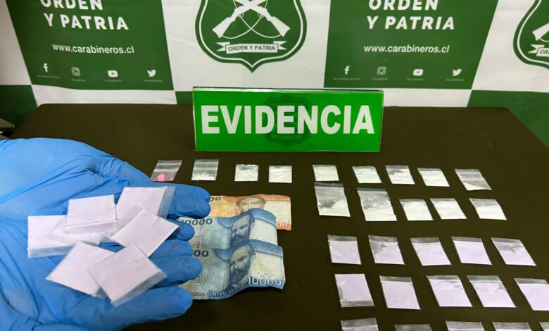 Por su parte, en calle Chacabuco, esquina Yungay, Carabineros del OS7 detuvo a un hombre de 22 años, de iniciales Y.I.U.G, quien fue advertido en una transacción de drogas, luego de la cual se le incautaron 13 gramos de cocaína, 20 gramos de ketamina, 1 comprimido de MDMA y 40 mil pesos en dinero en efectivo.