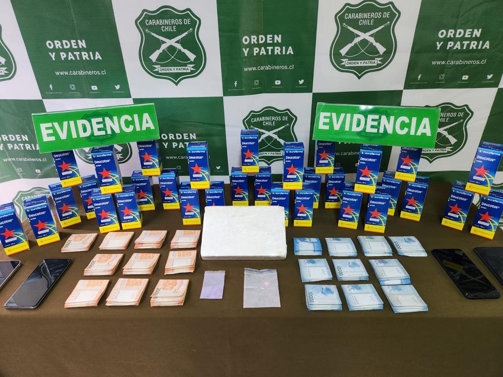 En fiscalización carretera a bus interprovincial, Carabineros del OS7 Valdivia detuvo a dos pasajeros que fueron sorprendidos con droga, fármacos sujetos a control y dinero en efectivo.