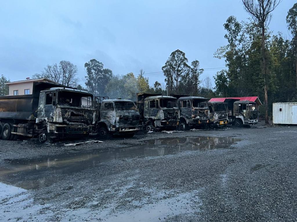 Durante la madrugada de este domingo un grupo armado realizó un atentado incendiario en dos comunas de la región de Los Ríos. En Máfil un grupo de al menos 17 terroristas calcinó 19 vehículos de la empresa Áridos del Sur. Se especula que integrantes del primer grupo se movilizaron hasta el fundo San Antonio de Forestal Arauco, en Lanco, donde los antisociales con armas de fuego intimidaron a los trabajadores del lugar e incendiaron maquinaria forestal, una camioneta y un container.