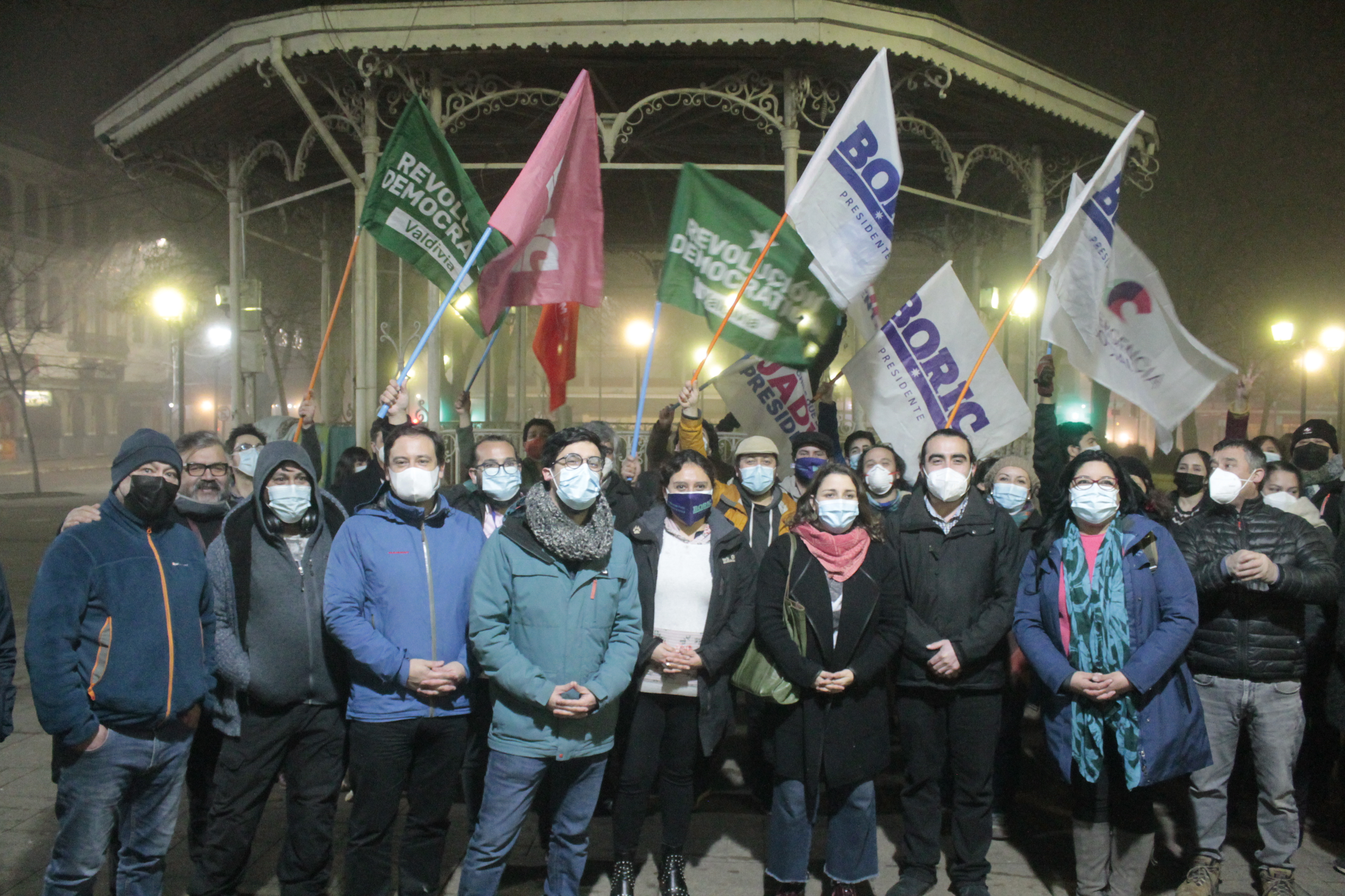 Como se está haciendo tradicional, nuevamente, los simpatizantes del progresismo local se acercaron a la plaza a festejar un nuevo triunfo electoral, esta vez se trató de la victoria del diputado magallánico, Gabriel Boric, en las primarias de la coalición Apruebo Dignidad.