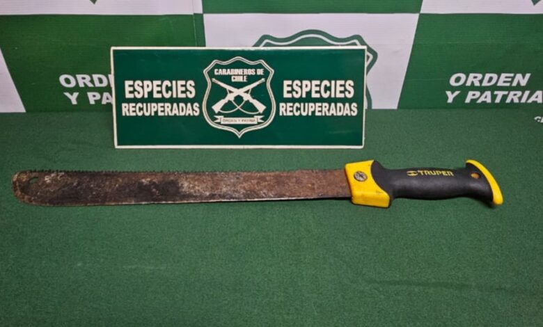 Durante la inspección al domicilio, Carabineros encontró un machete, el mismo que habría sido utilizado en la agresión y que fue reconocido por la víctima.