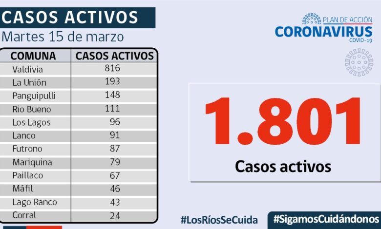 En esta jornada, la Autoridad Sanitaria informa la confirmación de cuatro personas fallecidas por causas asociadas a Covid-19. Se trata de una mujer de 68 años de la comuna de La Unión; una mujer de 80 años de la comuna de Mariquina; una mujer de 60 años de la comuna de Paillaco; un hombre de 35 años de la comuna de Río Bueno.