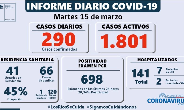 La Secretaría Regional Ministerial de Salud informa la confirmación de 290 casos nuevos para SARS-CoV-2. Del total de casos, 146 se diagnosticaron mediante test PCR y 144 fueron pesquisados con test de antígeno.
