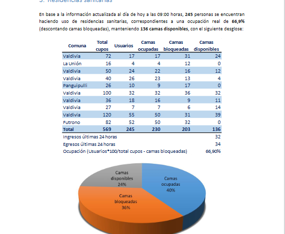 Respecto a las Residencias Sanitarias, a la fecha, 245 personas están haciendo uso de estos espacios de aislamiento, lo que representa una ocupación real del 66,9%. En ese sentido, de las 569 camas en total, 230 están ocupadas y 136 camas están disponibles.