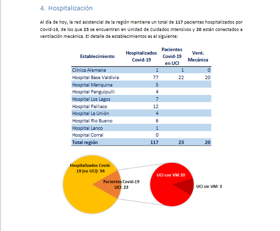En cuanto a las hospitalizaciones, 117 pacientes se mantienen internados en distintos recintos asistenciales de la región, de los cuales 23 se encuentran en la Unidad de Cuidados Intensivos (UCI) y 20 de ellos, están conectados a ventilación mecánica.