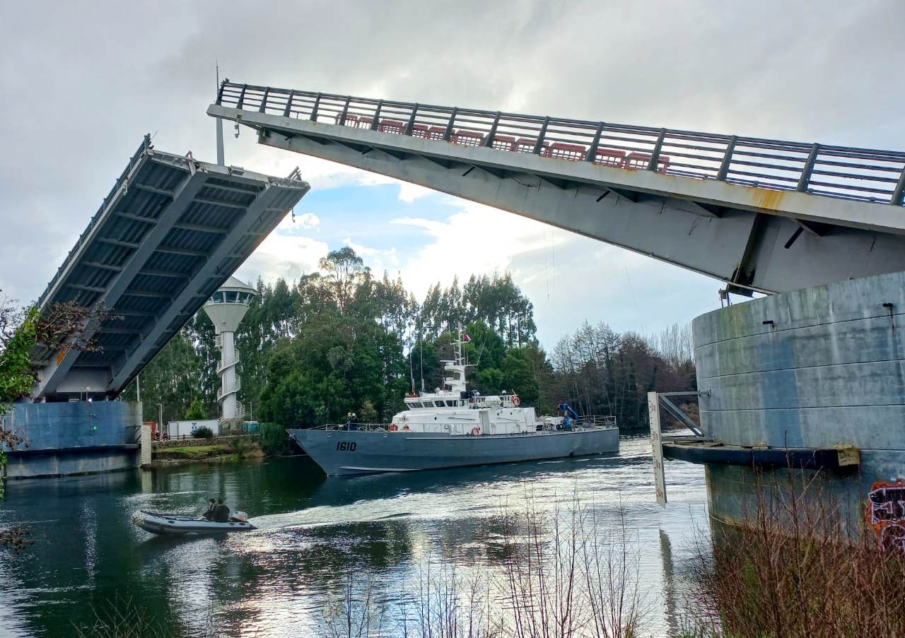 Jornada se vio retrasada por condiciones climáticas, que demoraron el zarpe en la bahía de Corral de los dos últimos remolcadores que transitaron por la zona del viaducto basculante de Valdivia.