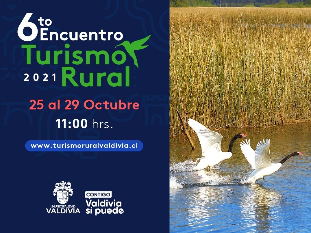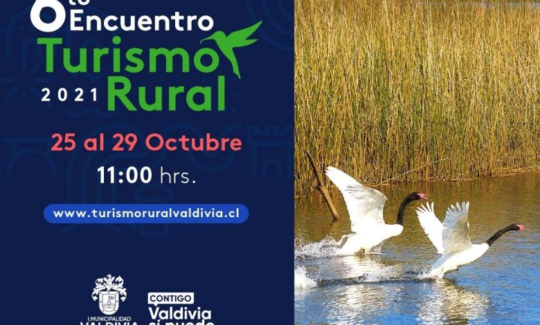 A partir del 25 al 29 de octubre se realizará la sexta versión del encuentro que convocará a expertos en turismo rural del sur del país, quienes compartirán ideas, proyectos, experiencias prácticas y conversaciones con el objetivo de preservar la identidad y patrimonio local a través del turismo. El evento será transmitido por el canal municipal ValdiviaTV y las redes sociales de Vive Valdivia.