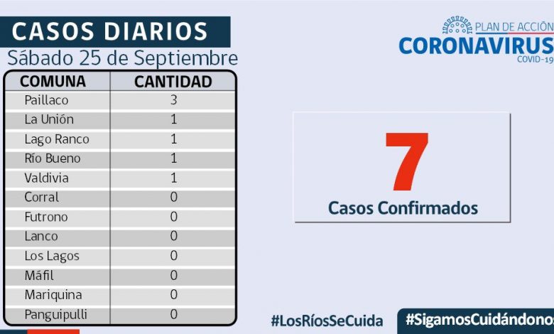 SEREMI de Salud, Keith Hood, informó que hoy se reportaron 7 nuevos casos de COVID-19 en Los Ríos.