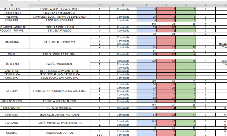 Resultados por Comuna, consulta ciudadana en la Región de los Ríos.