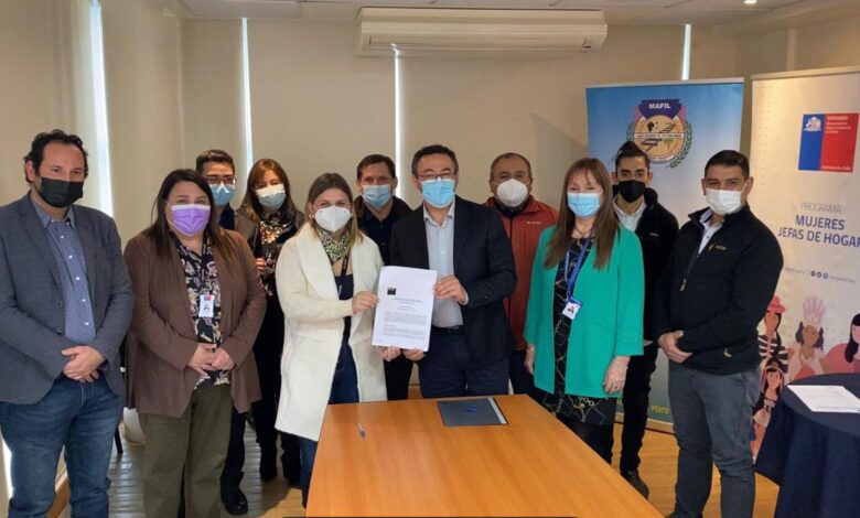 En presencia de la autoridad comunal, el alcalde de Máfil, Claudio Sepúlveda, en representación de la Directora Regional de SernamEG, Waleska Fehmann, la profesional, Paulina Taladriz, concejales de la comuna y equipos de SernamEG y el Municipio, se realizó la firma del convenio que permitirá impulsar y apoyar en el ámbito de inserción laboral a 60 mujeres de la comuna.
