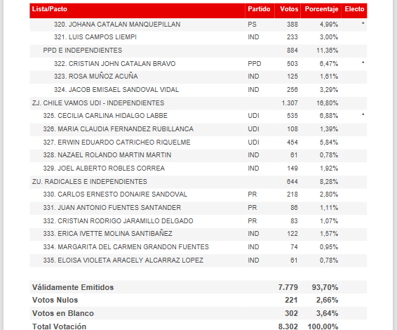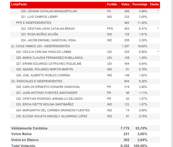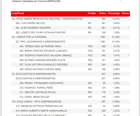 Votación Candidatos por Comuna MARIQUINA