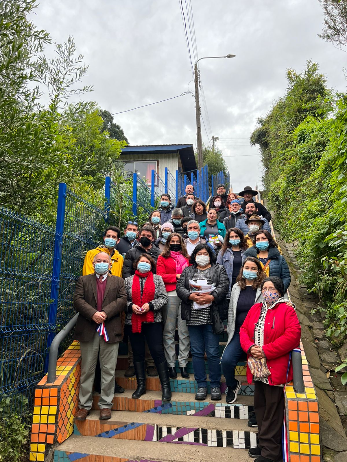 La obra se plasma a través de un trabajo en técnica de mosaico, con una mirada colorida que celebra y conmemora el patrimonio de sus habitantes, las principales actividades y costumbres. Ésta fue elegida mediante un concurso público, en donde los residentes podían votar a través del sitio web de la fundación por el diseño que más los representara. De esta manera el proyecto estuvo a cargo de tres artesanas locales, quienes trabajaron el mosaico para restaurar y hermosear la escalera.