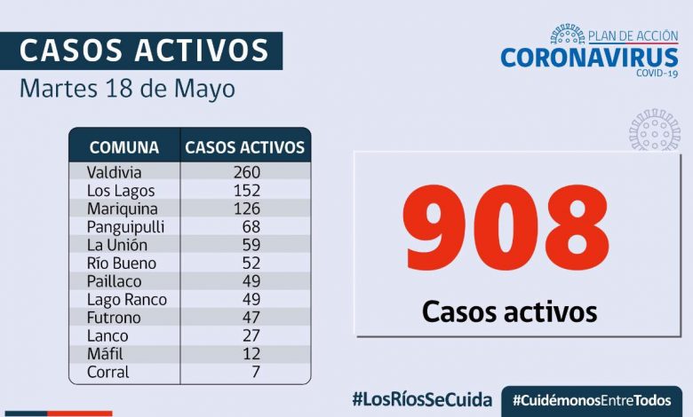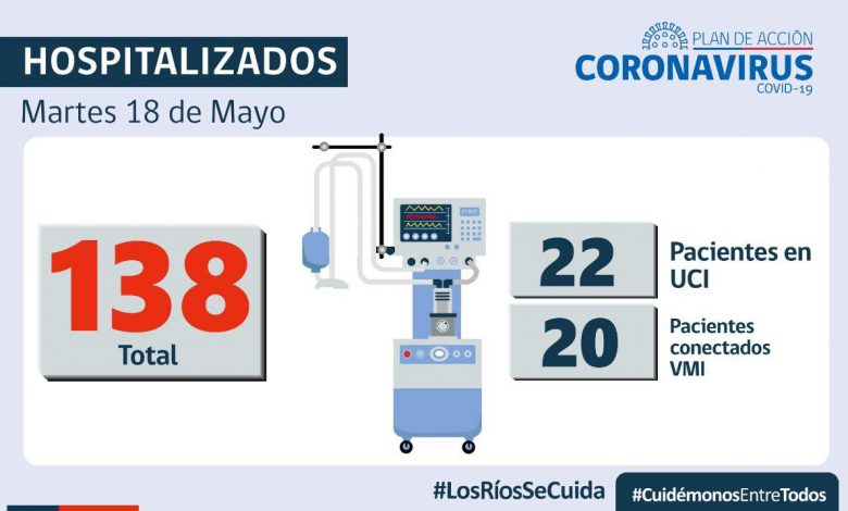 A la fecha en Los Ríos hay 908 casos activos y 138 personas hospitalizadas, de las cuales 20 están conectadas a ventilación mecánica 🚑