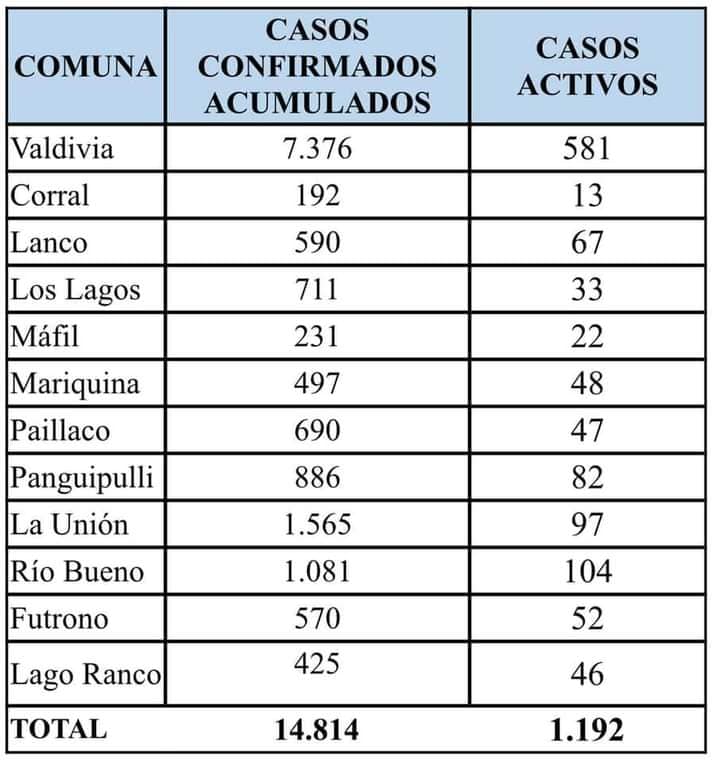En PautalosRios.clRadio: 🔴 El siguiente es el REPORTE COVID-19 en la REGION DE LOS RIOS, encabeza los contagios Valdivia con 104 contagios.