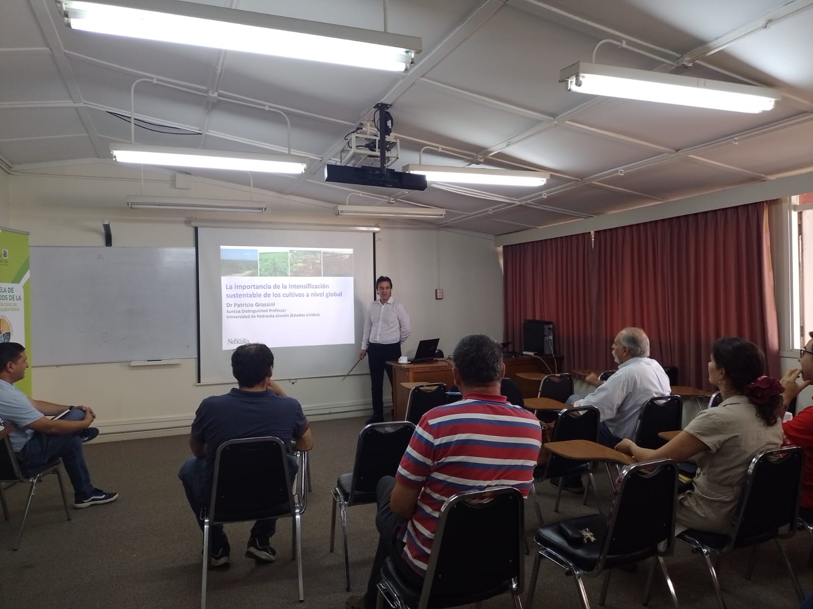 El 1 de marzo en la Sala Patricio Barriga de esta Facultad el investigador de la Universidad de Nebraska dictó un Coloquio de Investigación titulado “Brechas de rendimiento en sistemas productivos: importancia a nivel local y global”, impulsado por el Magister en Ciencias Vegetales y la Escuela de Graduados de la Facultad de Ciencias Agrarias y Alimentarias de la UACh.