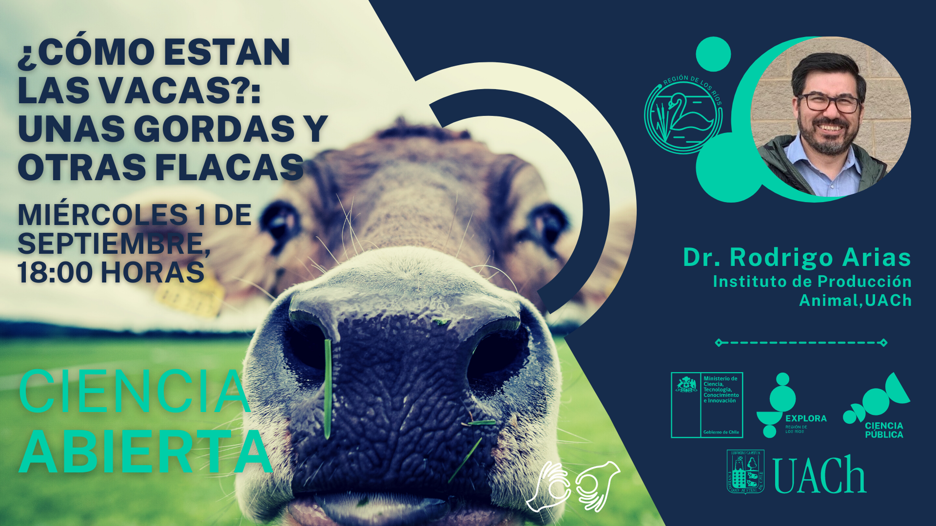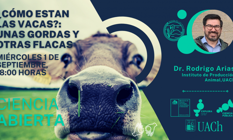 El miércoles 1 de septiembre el Dr. Rodrigo Arias Inostroza, Director del Doctorado en Ciencias Agrarias de la Universidad austral de Chile presentará “¿Cómo están las vacas?: Unas gordas y otras flacas”. En esta charla revisará el rol de la producción animal, especialmente revisando los cuestionamientos que reciben estos procesos, así como los beneficios que entregan al ser humano.
