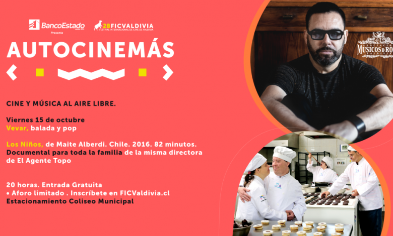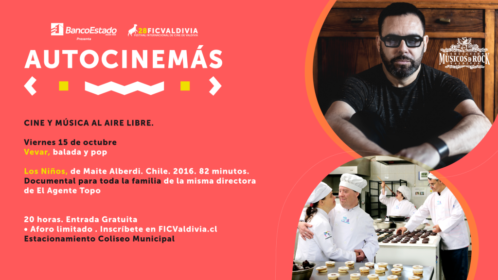 El equipo organizador del FicValdivia junto a Banco Estado, han programado esta actividad gratuita que presentará las películas nacionales Los Niños, de la directora Maite Alberdi (La Once, El Agente Topo, El Salvavidas) y La Mentirita Blanca de Tomás Alzamora. Lo particular es que se trata del primer autocine público y gratuito para toda la comunidad con cine y música en vivo en FICValdivia. Las bandas que serán parte de esta actividad son Vevar (René González), Astromelia y Mariana Eridea.