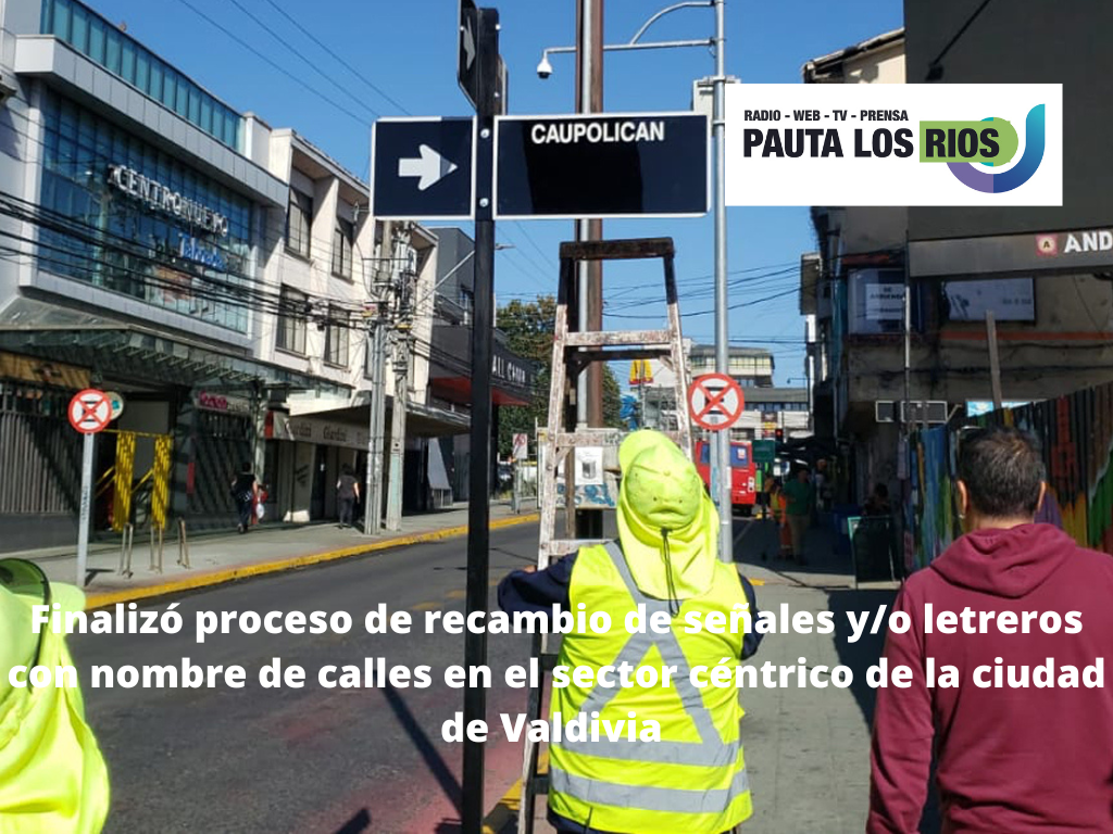 La Dirección de Tránsito y Transporte Público de la Ilustre Municipalidad de Valdivia informó que acaba de finalizar el proceso de recambio de señales y/o letreros con nombre de calles en el sector céntrico de la ciudad.