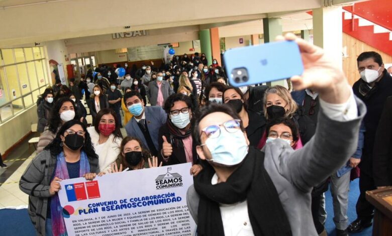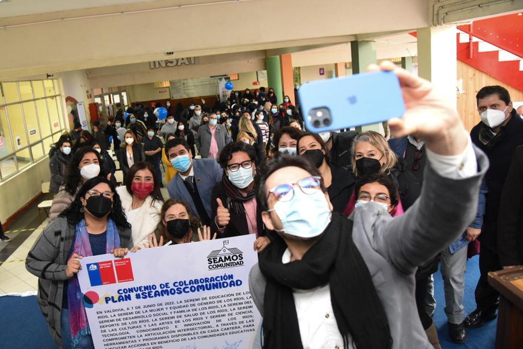 En el caso de Los Ríos, el lanzamiento se desarrolló en el Instituto Superior de Administración y Turismo, INSAT de Valdivia y, junto con la feria de servicios públicos, se realizó la firma de un convenio entre la Delegación Presidencial de Los Ríos y las Seremis de Educación, de Mujer y Equidad de Género, Desarrollo Social y Familia, Deportes, Salud, Las Culturas, Las Artes y el Patrimonio; y Ciencia, Tecnología, Conocimiento e Innovación. El objetivo del convenio es poner a disposición las herramientas y programas de cada cartera para el trabajo multisectorial con las comunidades educativas.