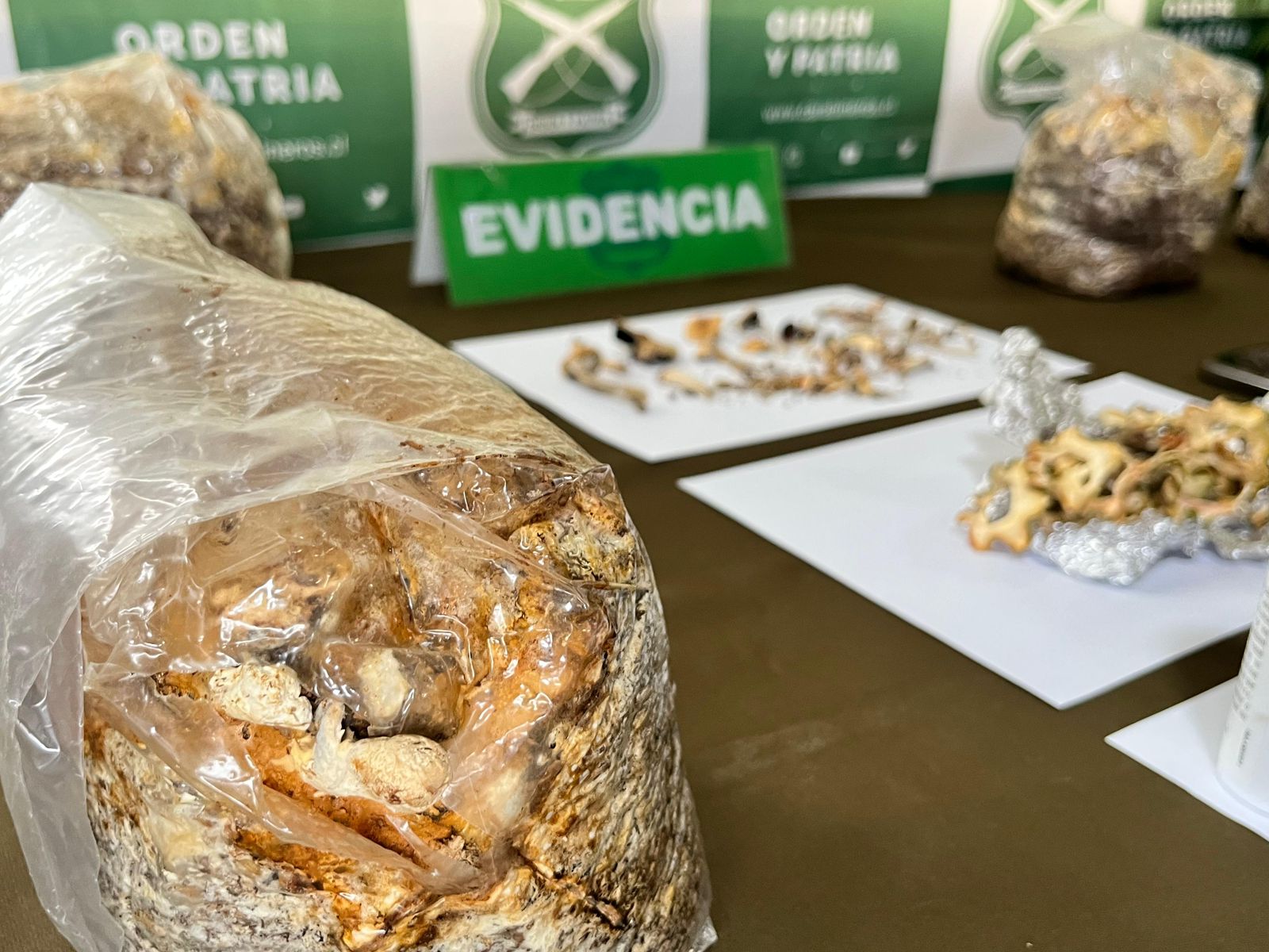 El procedimiento se originó a partir de una denuncia anónima realizada por vecinos del sector, lo que permitió el desarrollo de diligencias investigativas que culminaron con la incautación de más de 31 kilos de hongos alucinógenos, además de ocho plantas de cannabis sativa, las que se encontraban en poder del imputado.