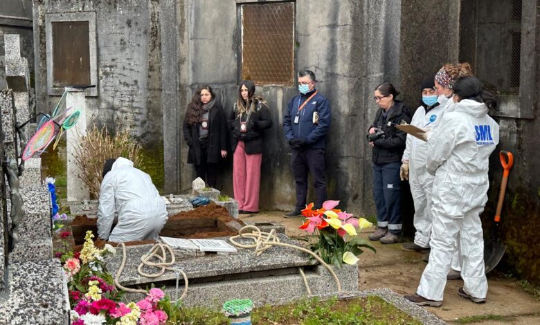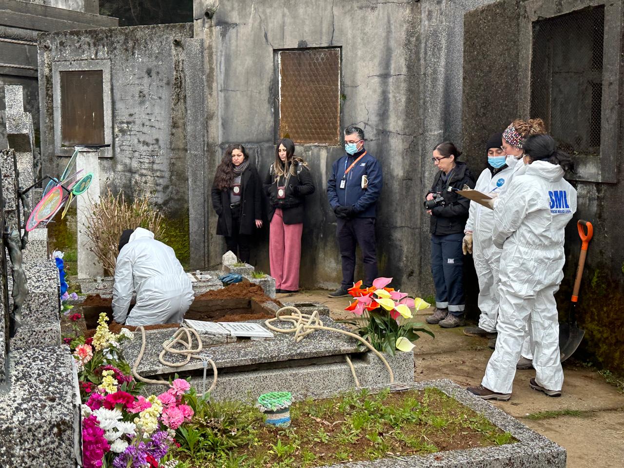 Por disposición de la Fiscalía de Los Ríos, en la exhumación participó un equipo de antropólogas de la Unidad de Casos Especiales del Servicio Médico Legal (SML) de Santiago y detectives de la Brigada de Homicidios de la Policía de Investigaciones de Valdivia.