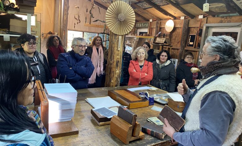 Asimismo, la jornada de celebración se trasladó hasta la localidad de Los Pellines, en la costa valdiviana, donde la comunidad funcionaria de las bibliotecas tuvo una experiencia lectora- patrimonial al Taller “De Nosotros”, donde fueron recibidos por sus anfitriones Roberto Celis Silva y Sandra Aguilar Quintrupai, quienes desarrollan el oficio de la encuadernación artesanal y artística, a través de técnicas como la serigrafía, grabado. Fue una instancia de camaradería, donde aprendieron sobre la historia, evolución del objeto libro y algunas de sus técnicas de restauración.