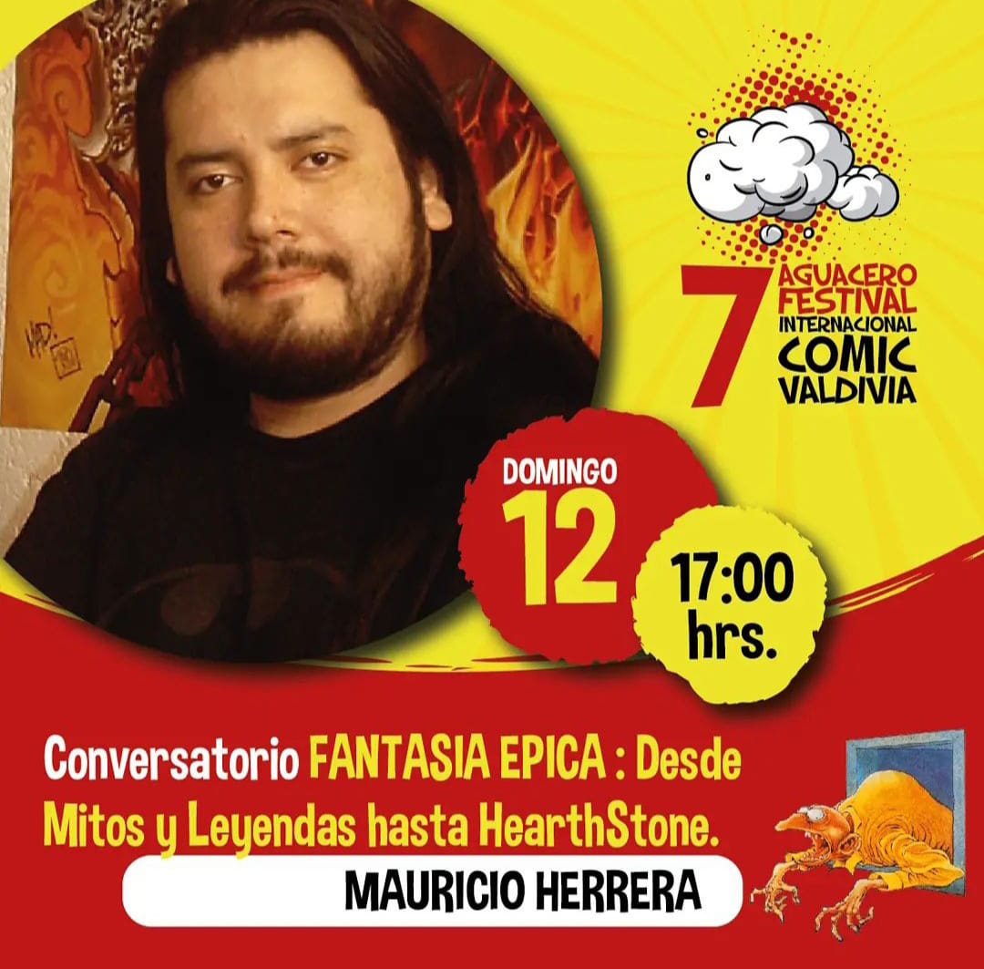 El creador y artista del proyecto cartas Mitos y Leyendas, Mauricio Herrera, ofrecerá una charla en la séptima edición del Festival Internacional Aguacero Cómics de Valdivia, en donde abordará temáticas relacionadas al área de la industria del entretenimiento.