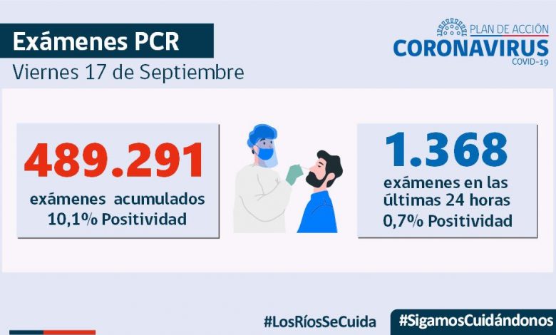 Valdivia, El Ranco.Durante esta jornada se informó el procesamiento de 1.368 exámenes, con una positividad de 0,7%, En Residencias Sanitarias se mantienen 18 usuarios, lo que representa un 20,6% de ocupación real, A la fecha en Los Ríos hay 38 casos activos, de los cuales 16 corresponden a la comuna de Futrono y 12 a la comuna de Panguipulli.