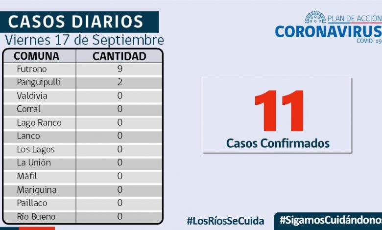 Futrono con 9 contagios y Panguipulli con 2 casos diarios en esta jornada.