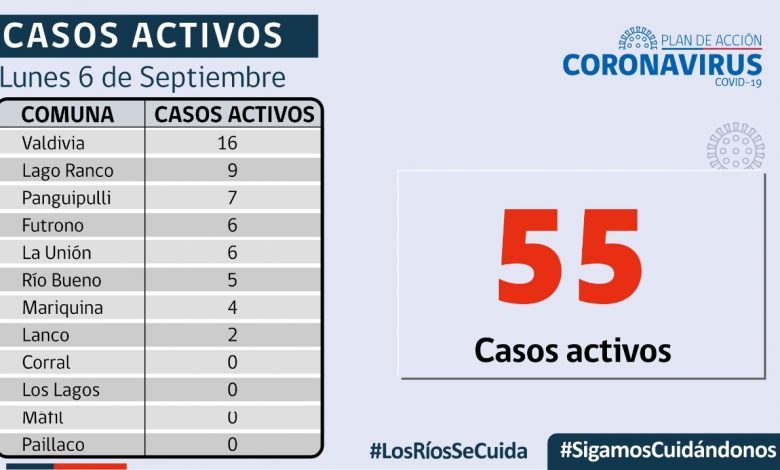 De los 3 casos confirmados por residencia en Los Ríos, 2 corresponden a casos secundarios y 1 está en investigación. En tanto, a la fecha, la región presenta 49.572 casos acumulados, de los cuales 55 corresponden a casos activos, 48.869 a personas recuperadas y 648 a fallecidos.