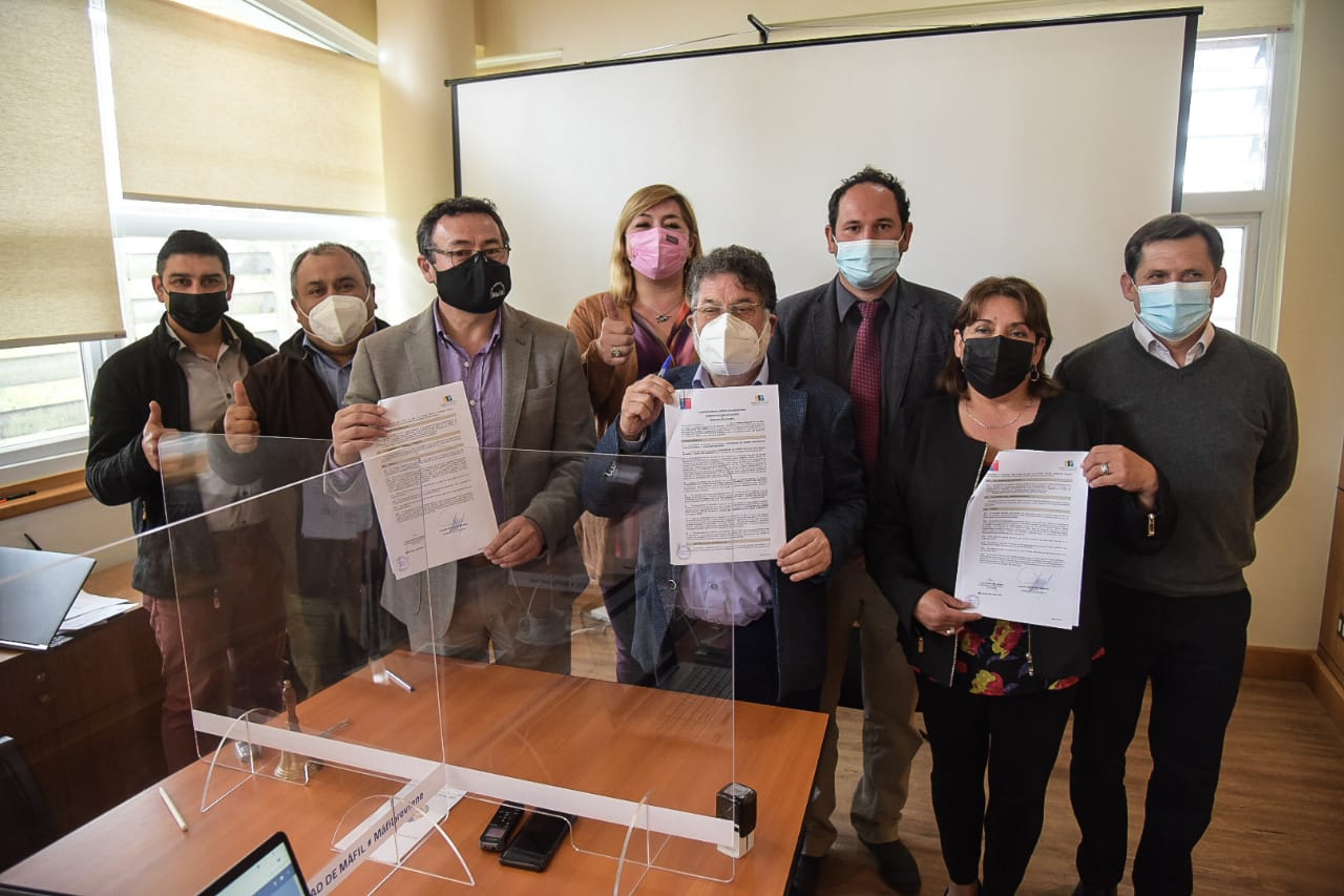 Con la firma de un convenio mandato, realizado en la sesión del Concejo Municipal de la comuna de Máfil, el Gobernador Regional Luis Cuvertino y el alcalde Claudio Sepúlveda, concretaron la autorización de los recursos, que permitirá abrir la licitación para la adquisición de un camión recolector de residuos, con fondos correspondientes al Fondo Nacional de Desarrollo Regional (FNDR), por un monto de $148 millones.