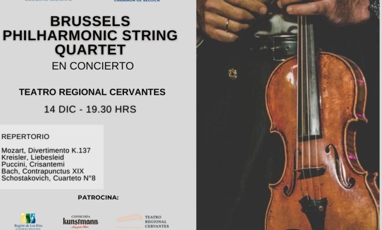 El próximo 14 de diciembre a las 19:30 horas se presentará en Concierto el Cuarteto de Cuerdas de la Orquesta Filarmónica de Bruselas, Bélgica («Brussels Philarmonic String Quartet) en el Teatro Regional Cervantes. El evento es organizado por el Gobierno Regional de Los Ríos, enmarcado en la consolidación del «Plan de Asuntos Internacionales» y en el fortalecimiento de la amistad y cooperación de Los Ríos con el Reino de Bélgica.