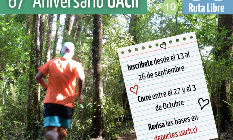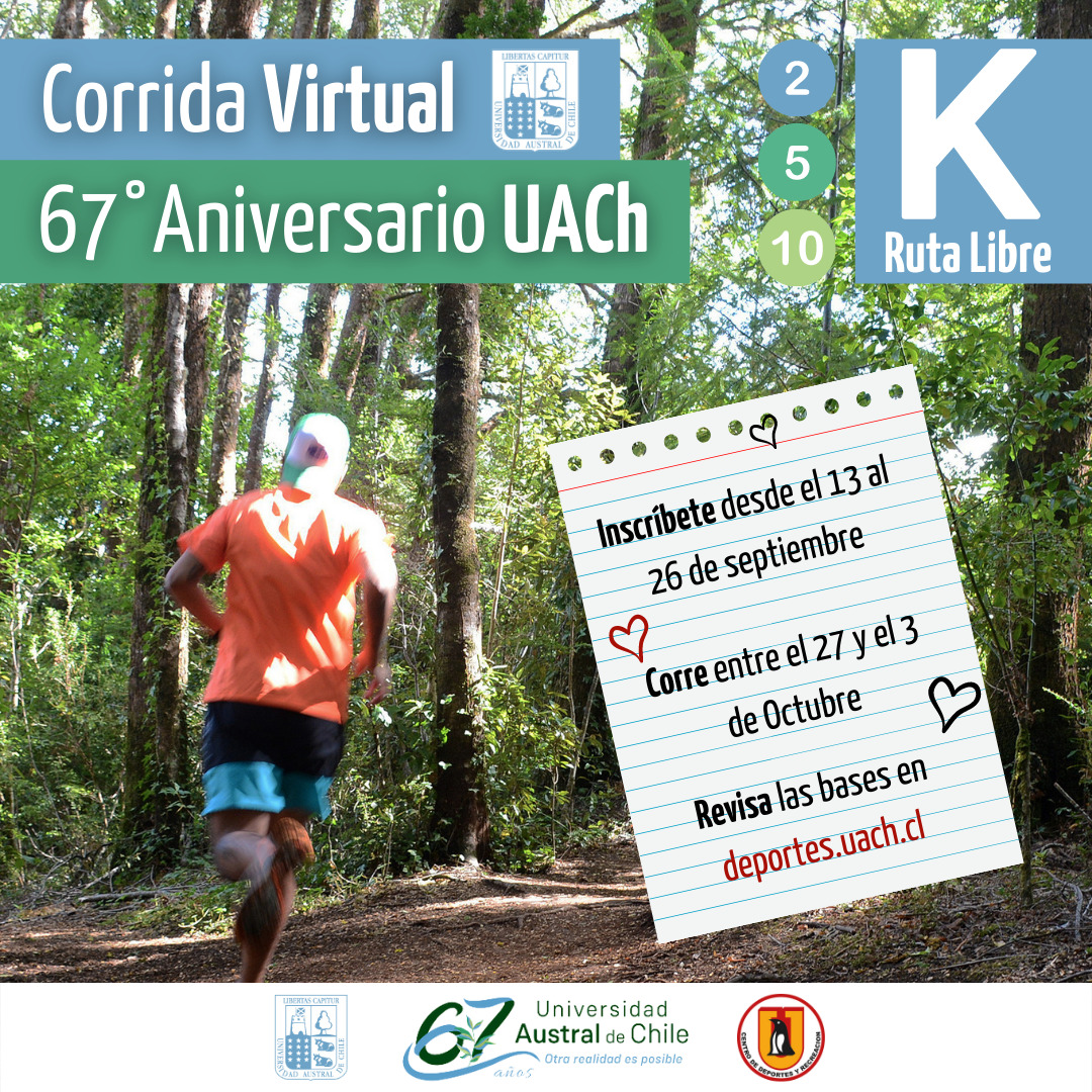 En este contexto, el deporte se hará presente a través de la Corrida Virtual 67° Aniversario UACh que organiza el Centro de Deportes y Recreación de la casa de estudios.