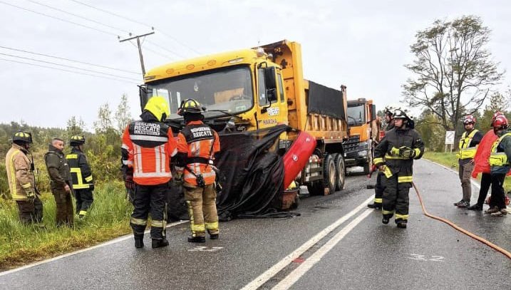Grave accidente en la ruta Futrono – Los Lagos Se trata de colisión frontal entre un vehículo menor y camión en sector Quilme. Bomberos trabaja en el retiro de un cuerpo, la persona estaría fallecida, Carabineros adopta el procedimiento.